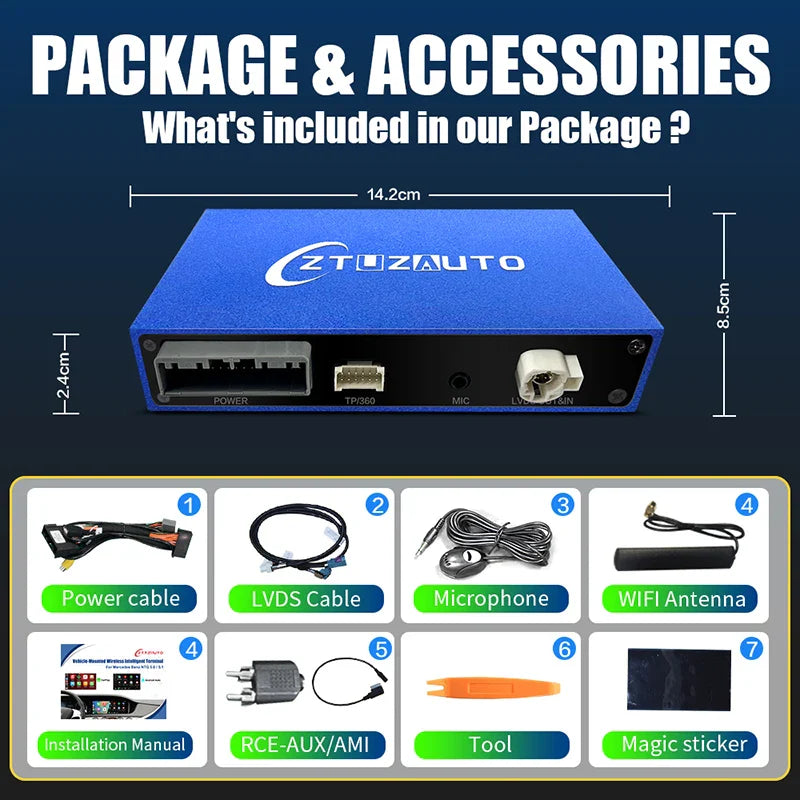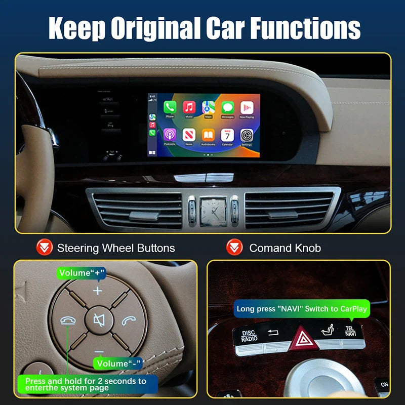 【Wireless / Wired Carplay 】Original automobile wiring for Mercedes Benz S-Class / CL W221 2010-2012 NTG3.5 System, plug and play; no cutting or breaking of wires. Increase the intelligence of your car without having to change the OEM screen.
