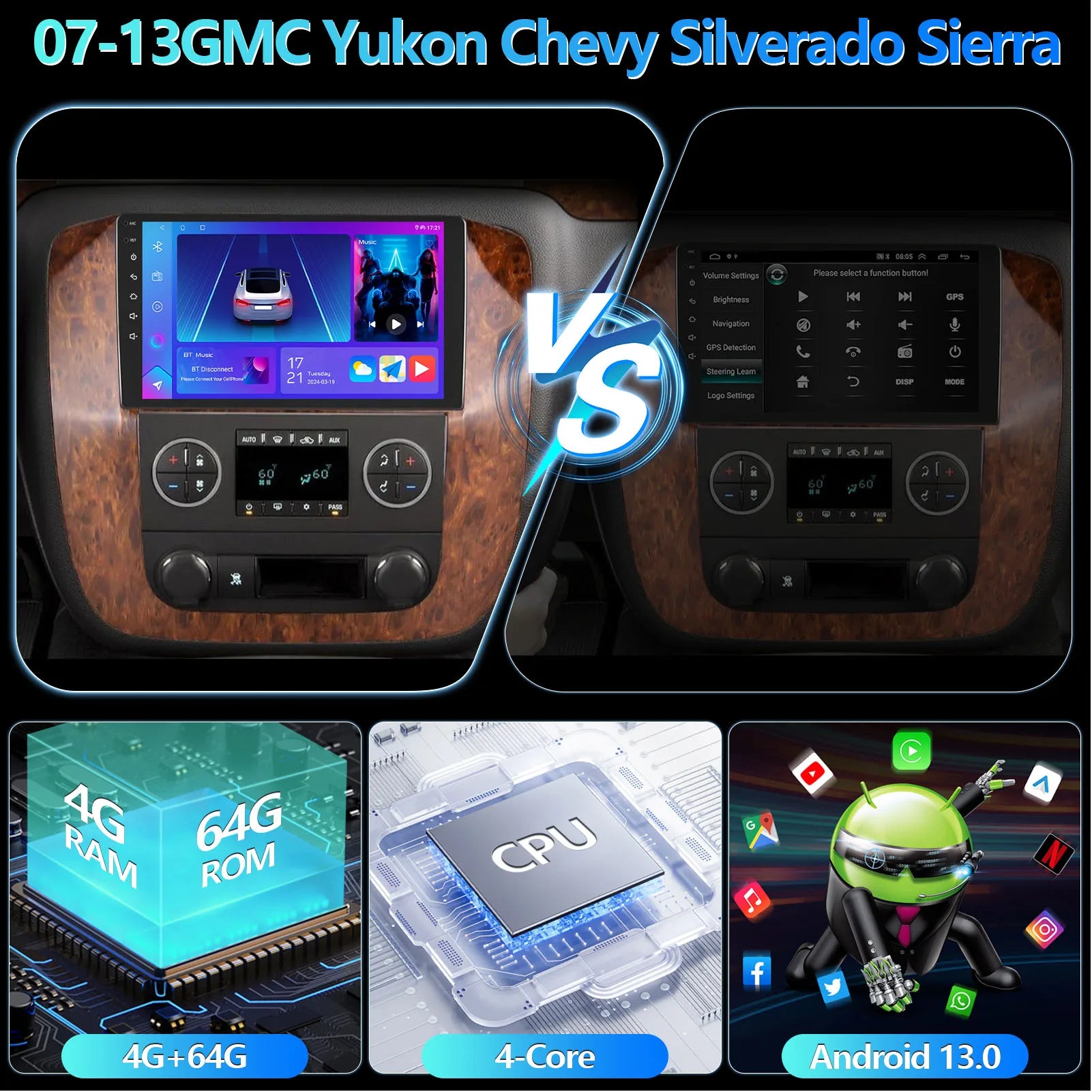 Wireless Carplay Multimedia Radio Video Player GPS Navigation For 2007-2013 GMC Yukon Chevrolet Tahoe Suburban Silverado Sierra