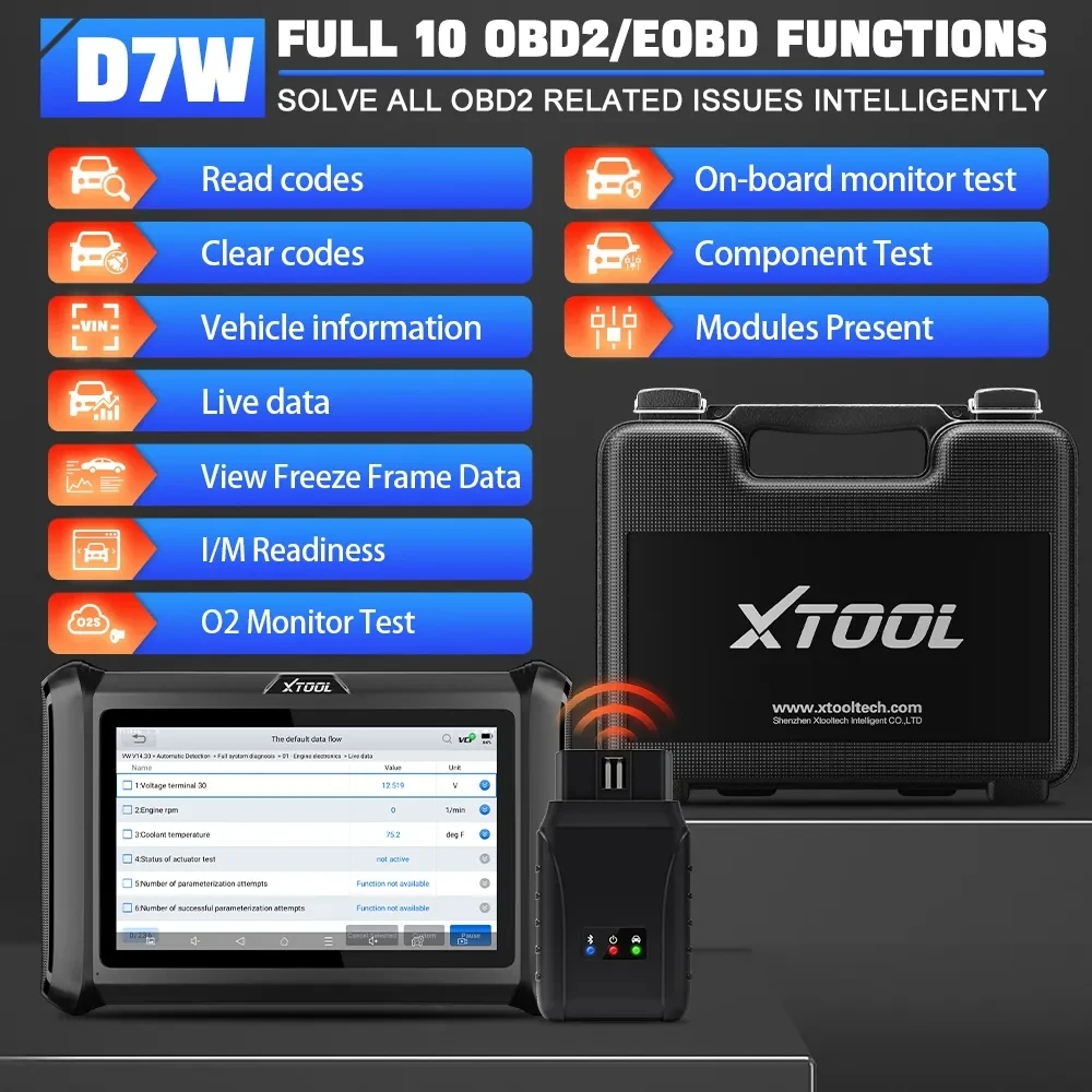 XTOOL D7W OBDII Scanner Full System Diagnostic Tools ECU Coding Data Stream FCA 36+Reset Bidirectional Control Automotive tools