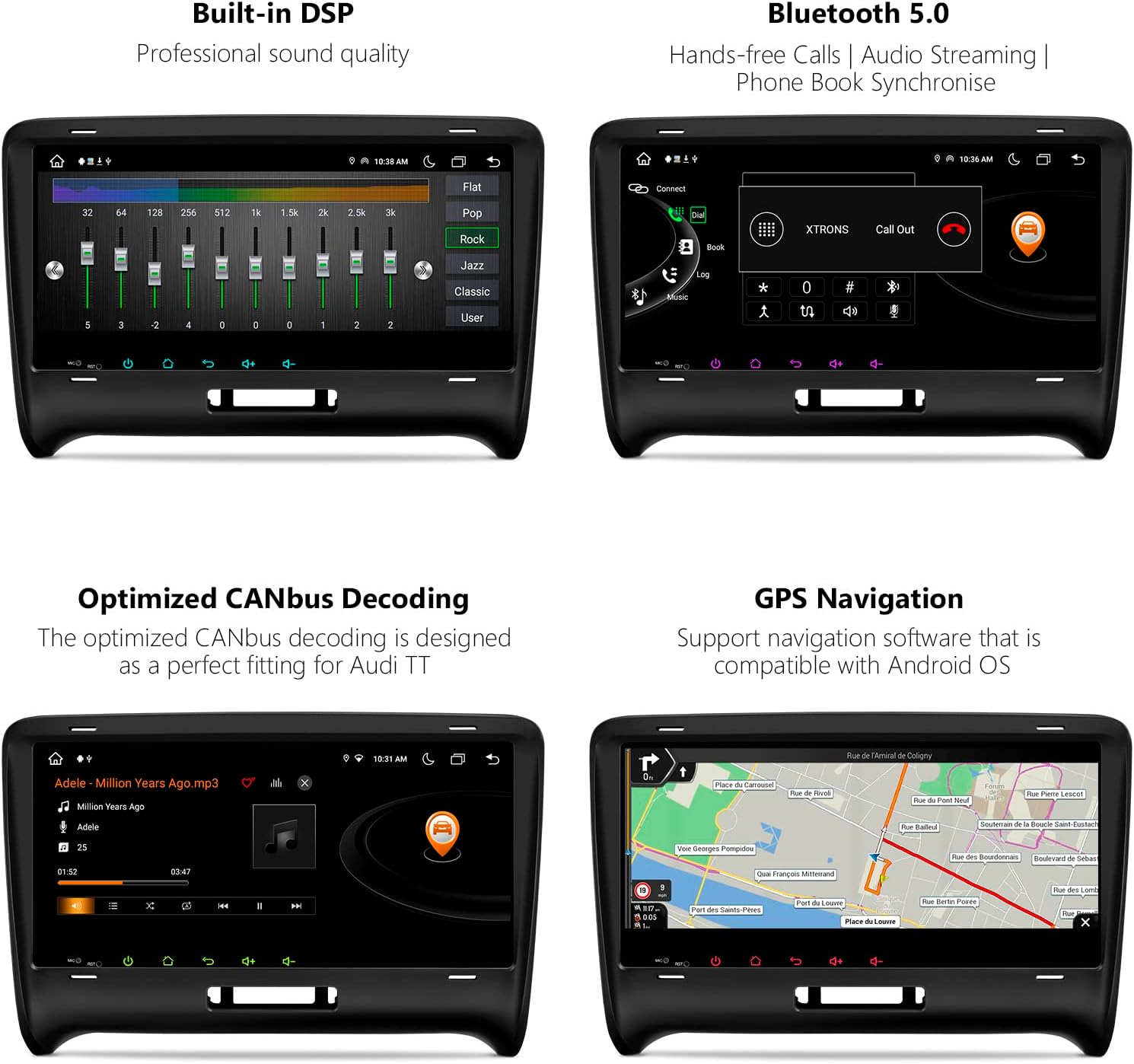 Keep it classic, keep it stylish. The dual exclusive XTRONS UI presents optimized menus and intuitive icons in a distraction-free manner for your safe driving.