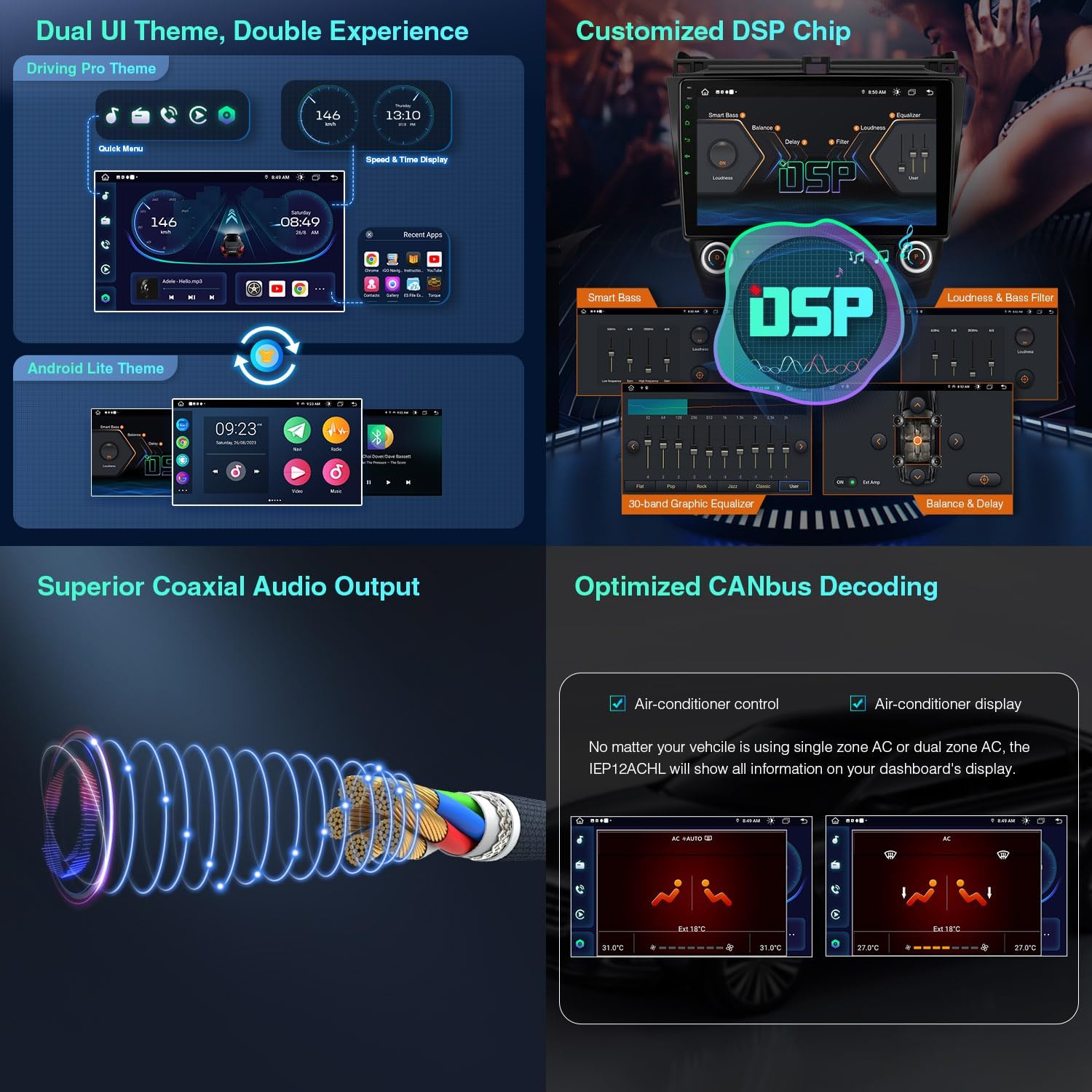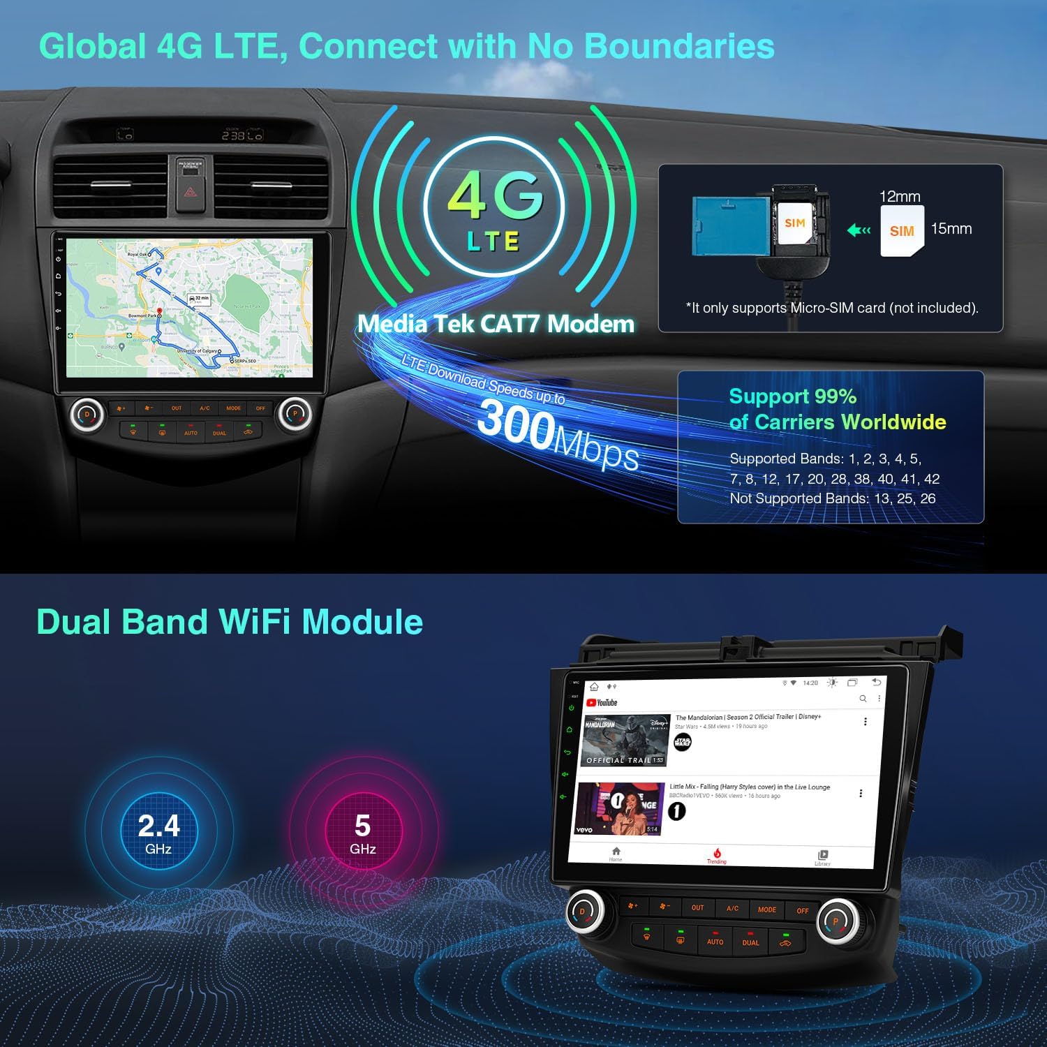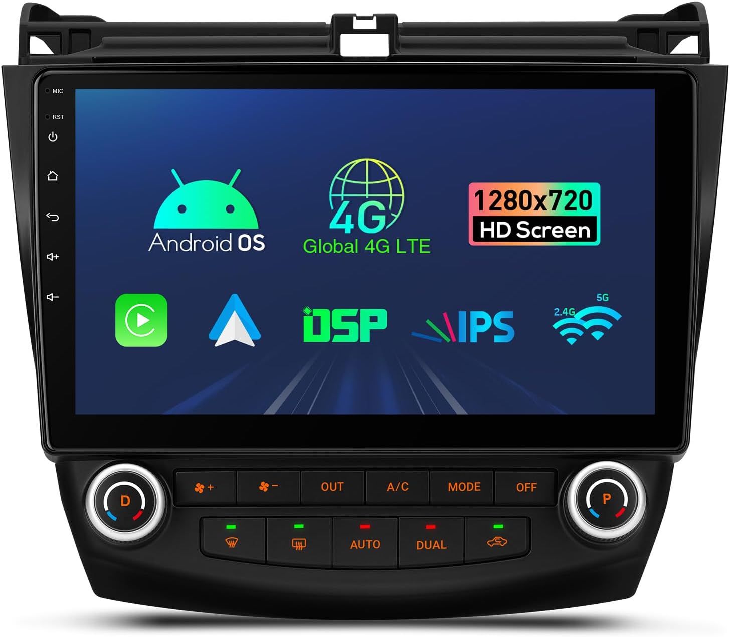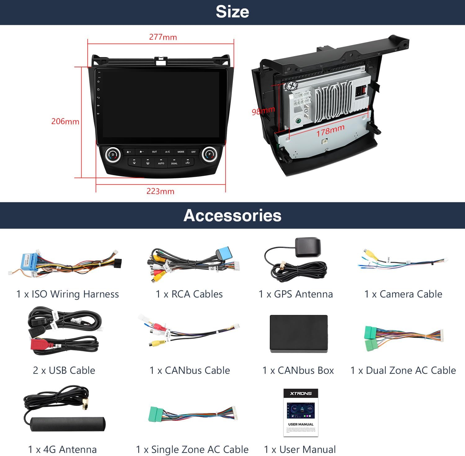 XTRONS Android 13 Car Stereo Radio Player 10.1 Inch IPS Touch Screen GPS Navigation Built-in DSP Car Play Android Auto Bluetooth Head Unit Supports Backup Camera WiFi OBD2 DVR 4G LTE for Honda Accord
