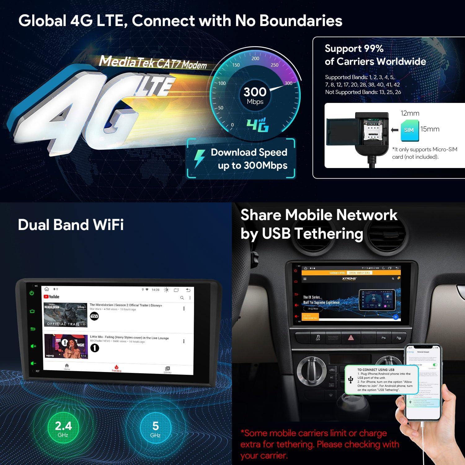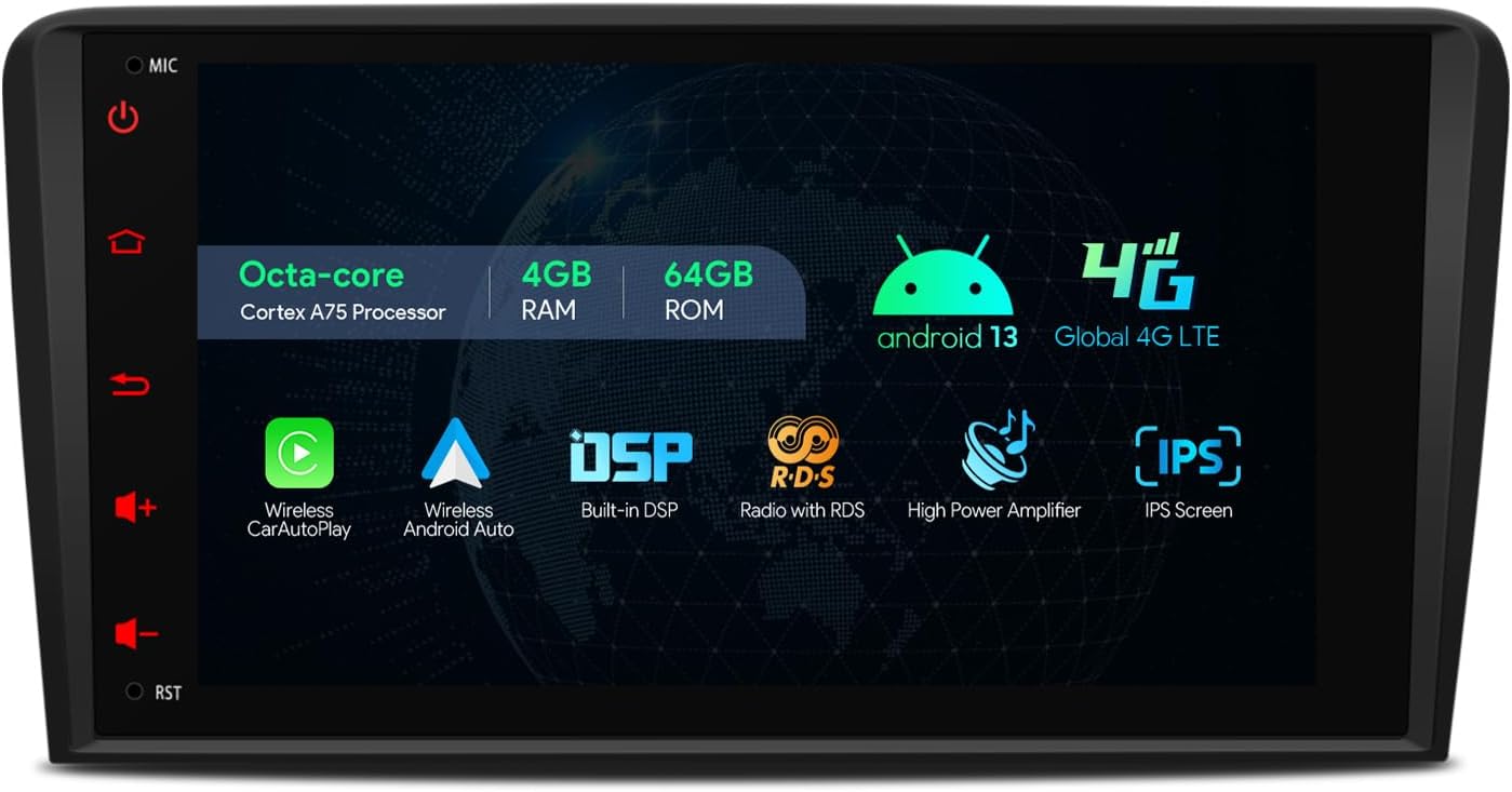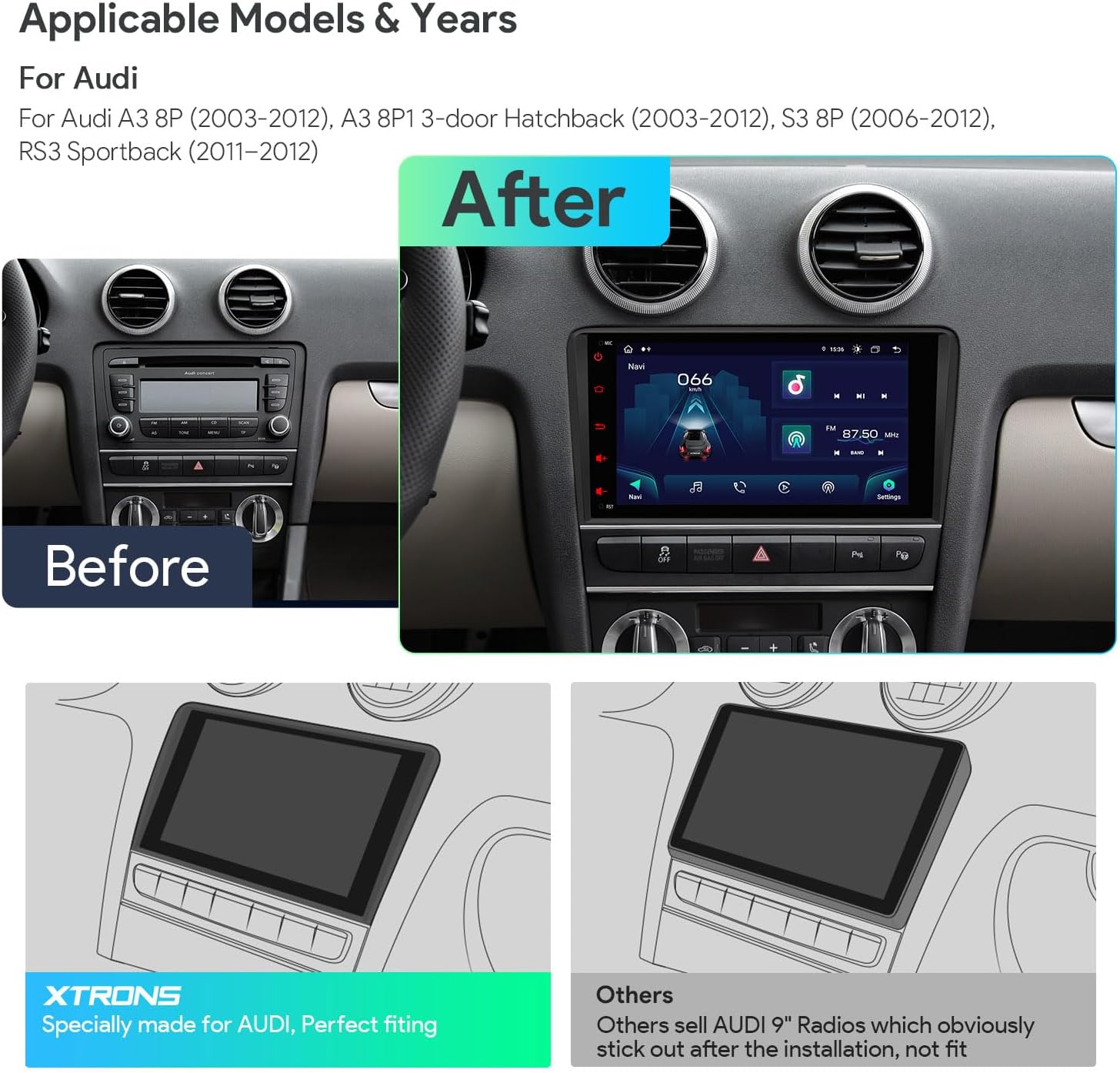 XTRONS Car Stereo for Audi A3 S3 RS3, Android 13 Octa Core 4GB+64GB Car Radio, 8 Inch IPS Touch Screen GPS Navigation for Car Bluetooth Head Unit, Built-in DSP Car Play Android Auto Support 4G LTE