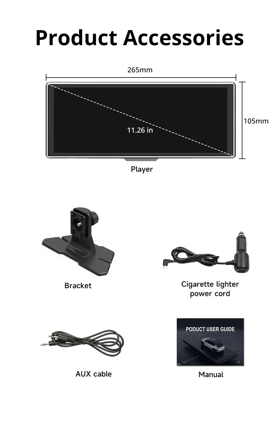 • 11.26 inches of High-Quality Display :The 11.26 inches of high-quality display provides clear and detailed visuals, making it easy to navigate through your music and videos.
