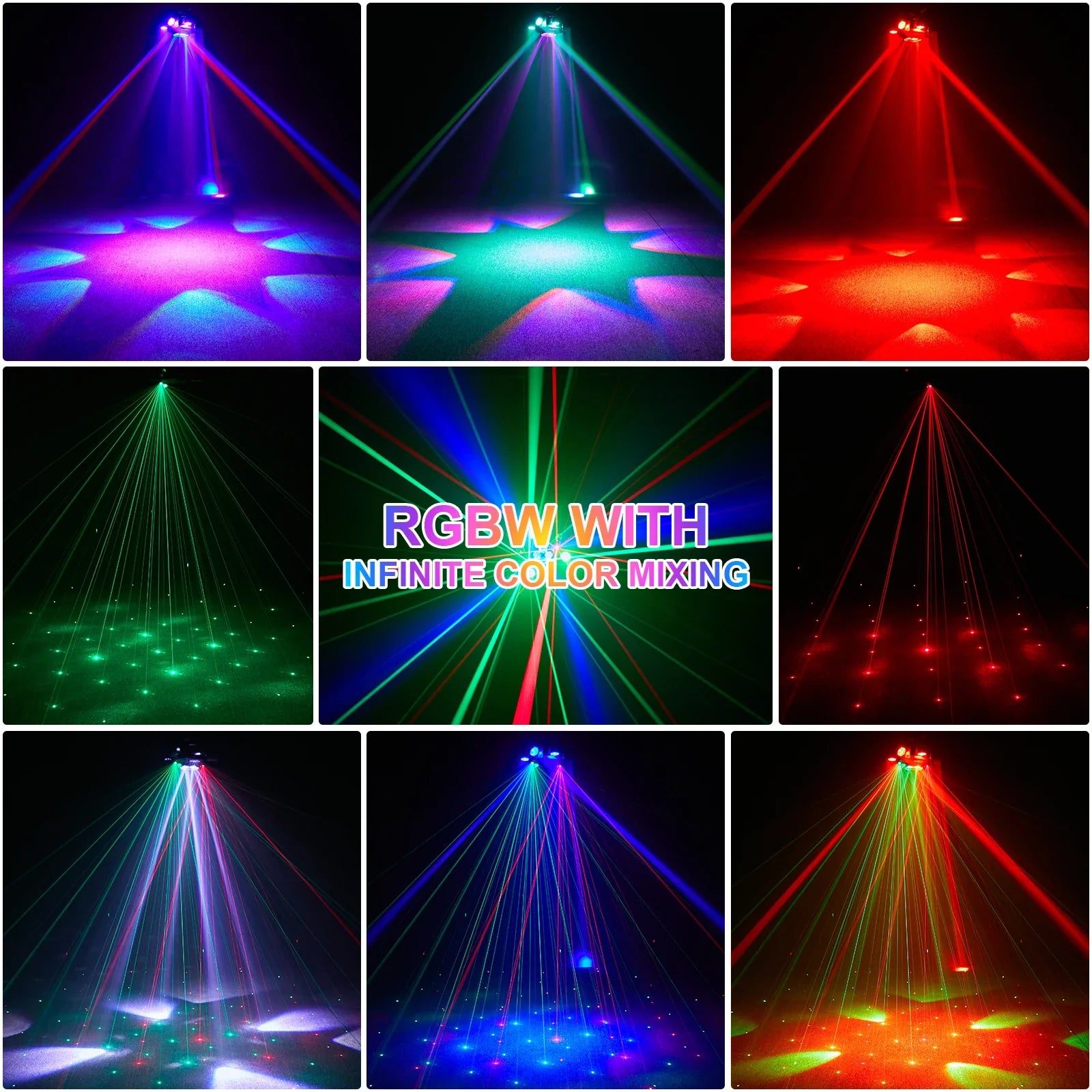 3. 3-arm 4-in-1 beam 180° rotation effect, infinite color mixing