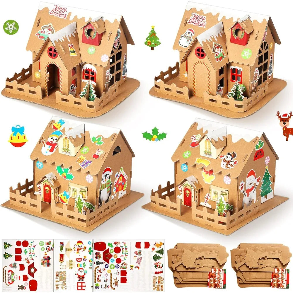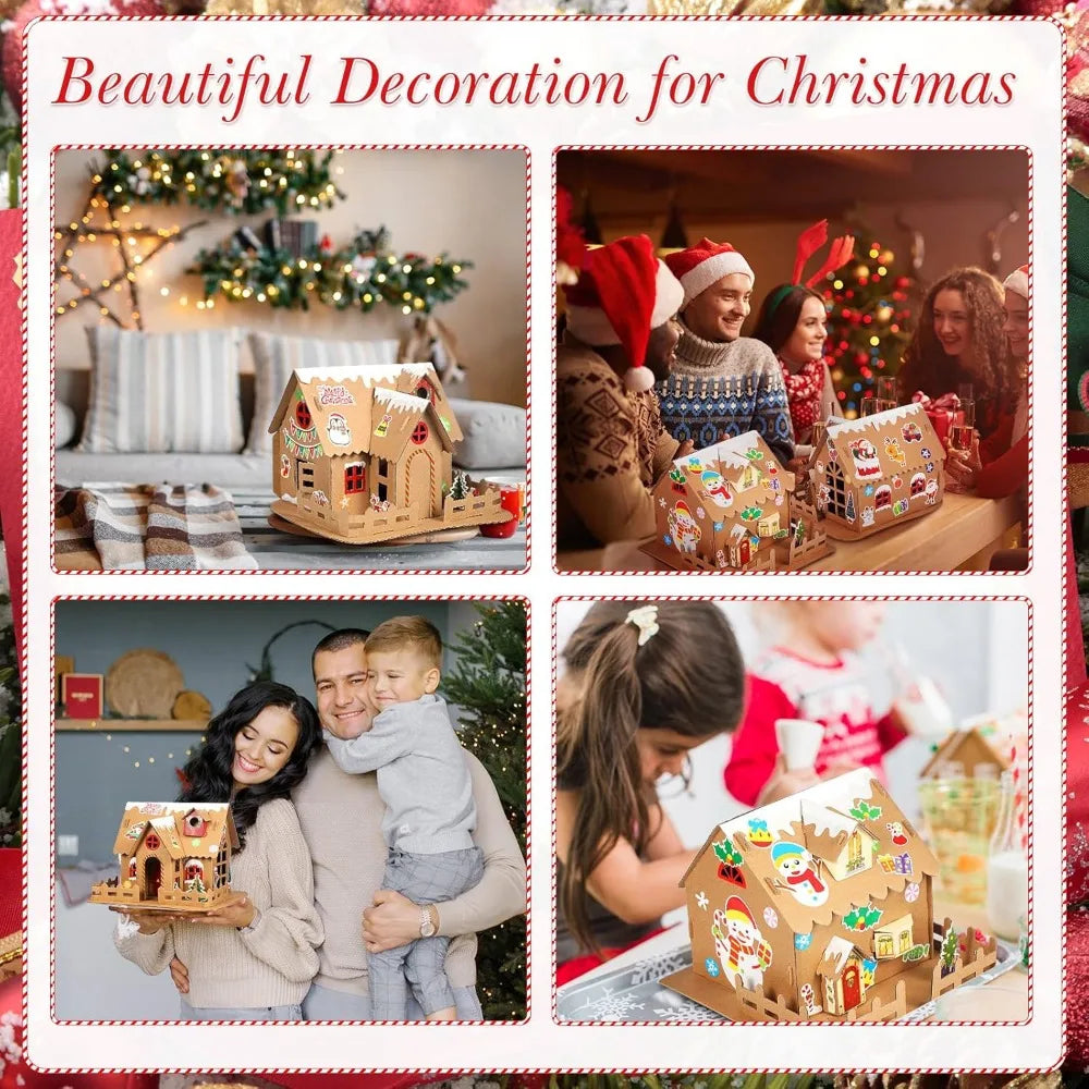 Yunsailing Christmas Gingerbread House Kit Cardboard Christmas ay Fun Game Party Decorating Playtime(12 Sets)