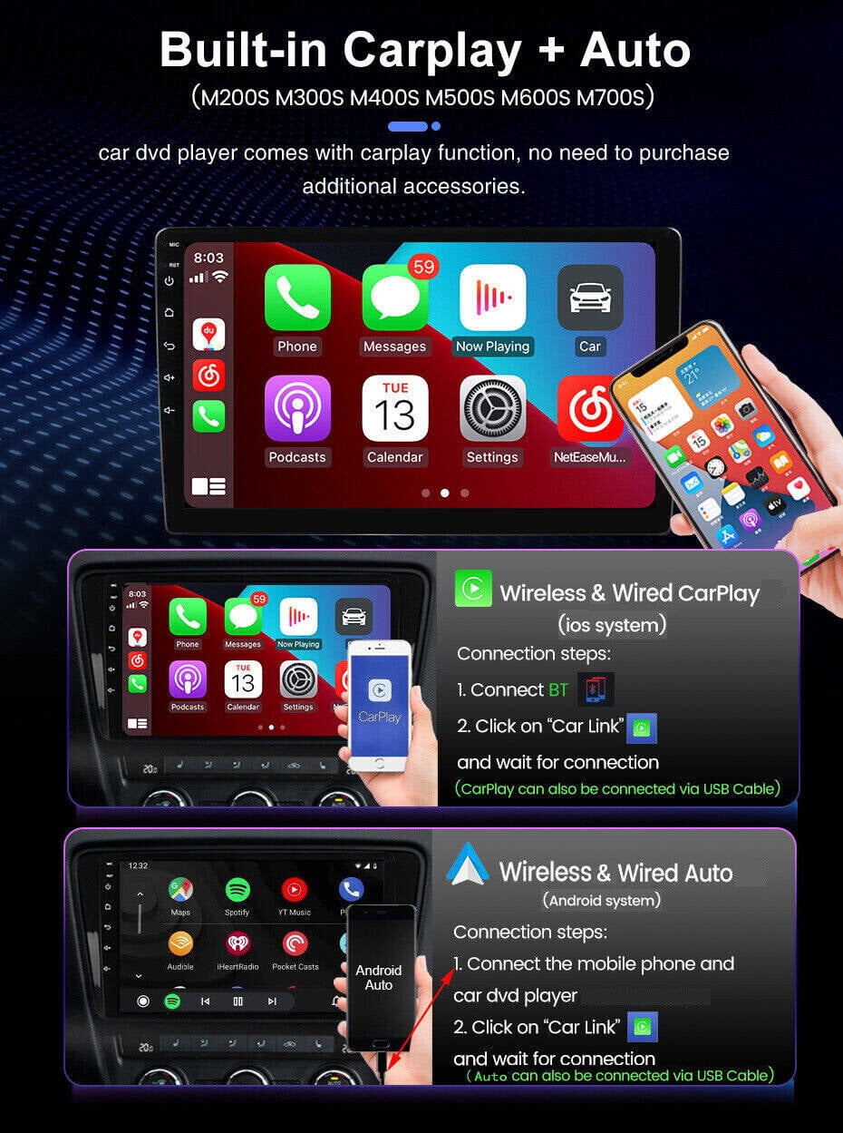 ●Wireless Carplay: You can choose wired connection or wireless connection to carplay, connect to Apple mobile phone, access mobile phone address book, mail, notification, map navigation, music, video and other information, and realize voice control.