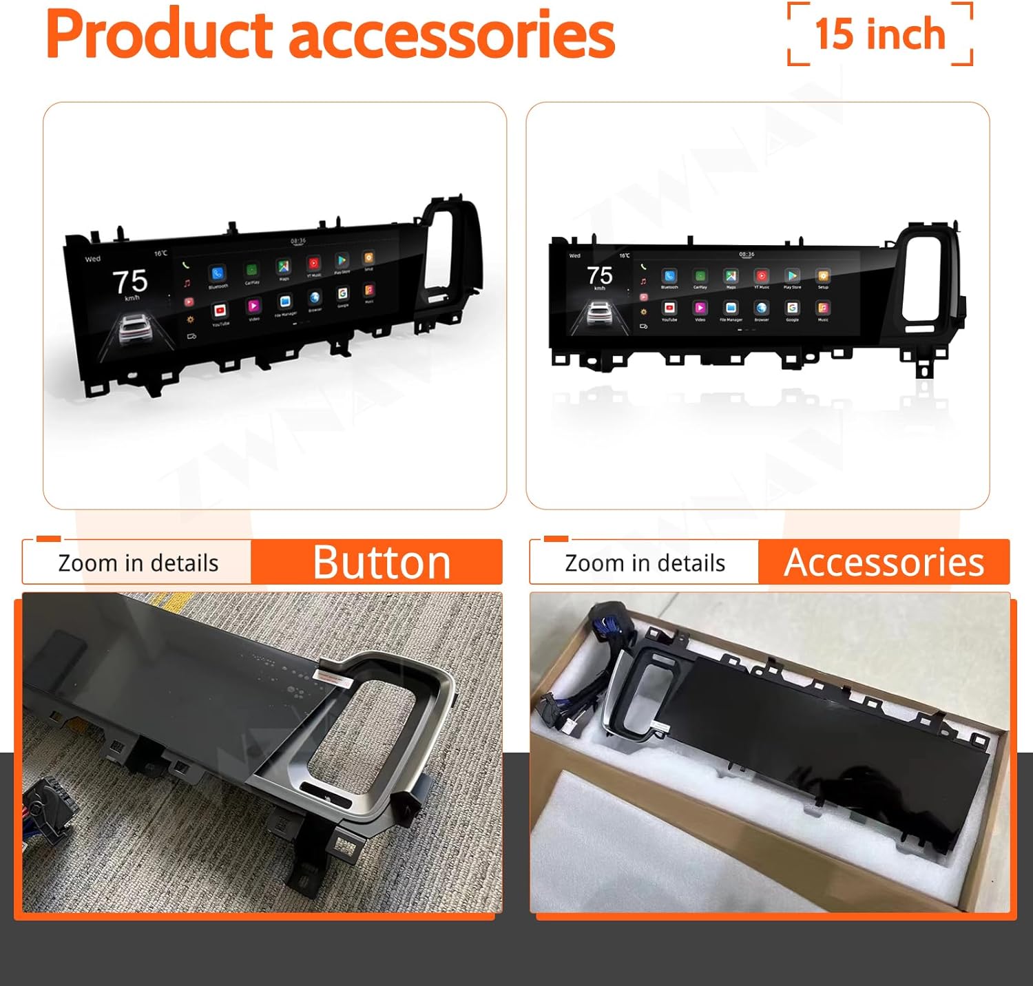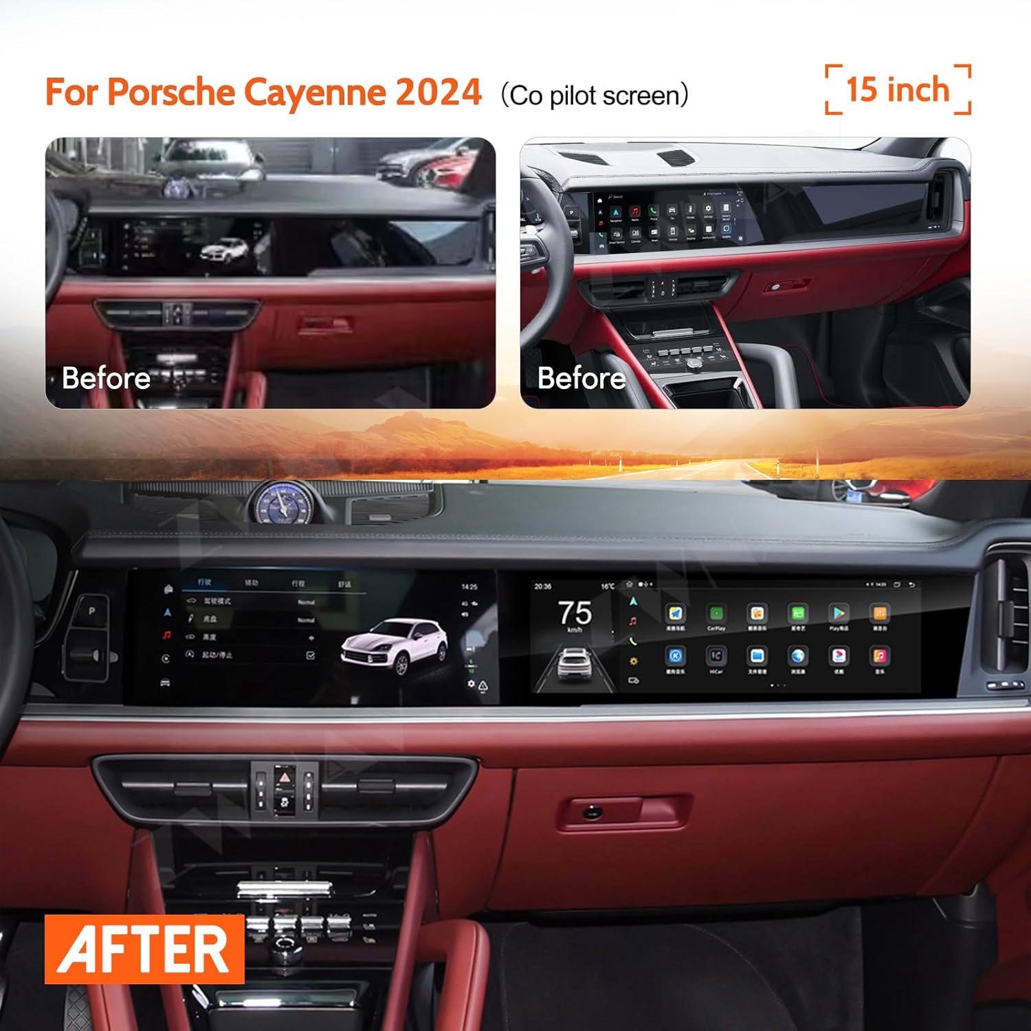 ZWNAV 15 inch Android 12 Co-Pilot Screen Car Stereo for Porsche Cayenne 2024,64GB Qualcomm 6125 Car GPS Navigation Head Unit, Wireless Carplay, Bluetooth,WiFi